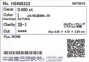 | 鑑定機関 | 中央宝石研究所 |