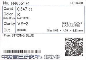 | 製品名 | 【燐光性あるかも】 ダイヤモンド ルース 0.547ct Kカラー, マーキース 【 照りのある綺麗な形状です。 】 |