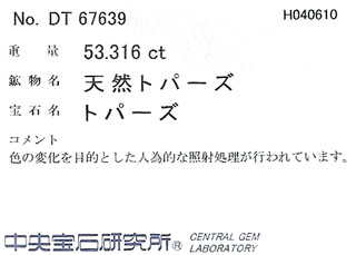 コメント 色の変化を目的とした人為的な照射処理が行われています。