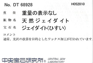 ●一般的にヒスイと呼ばれる宝石には2種類有り、一つは「本ヒスイ」とか「硬玉」と呼ばれる「ジェイダイト ( ジェダイト ) 」。もう一つは「台湾ヒスイ」とか「軟玉」と呼ばれる「ネフライト」。