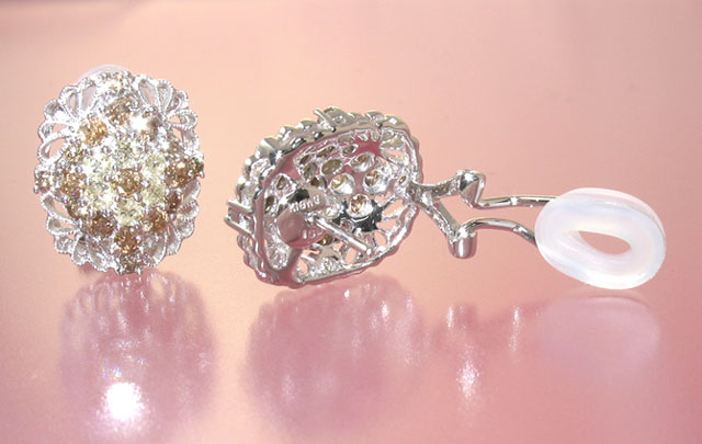 | ●ブラウンダイヤとイエローダイヤをたっぷりペアで合計2カラット(46ピース)も使っています。 ●しかもミル打ちを施しているので、アンティークな表情も楽しめます!ちょっとしっかりしたいときにぜひオススメの逸品! |