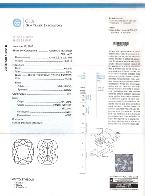 | カラー | Fancy Intense Yellow ファンシー・インテンス・イエロー |