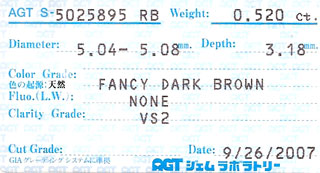 ブラウンダイヤ ルース 0.520ct VS-2 ラウンドブリリアント