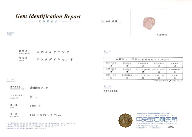 中央宝石研究所鑑別書画像