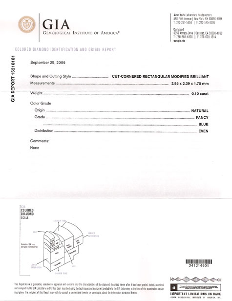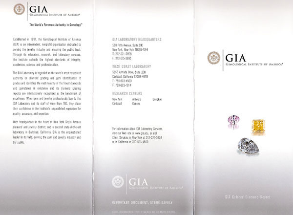 | GIAレポートの表面画像です。 カラーダイヤモンド専用の表紙です。 ![]() |