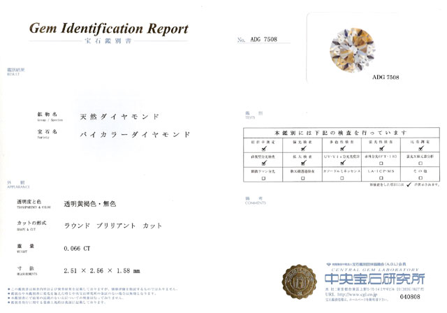 | 製品名 | めったに出会えない逸品です 【バイカラーダイヤモンド】 ルース 0.066ct 【鑑別書付き】 |