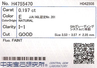 | 製品名 | 【ガーネットと思われる結晶入り Eカラー】 ダイヤモンド ルース 0.197ct 【おそらくガーネットクリスタルインダイヤモンド】 |