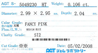 | カラー | Fancy Pink ( ファンシー・ピンク ) |