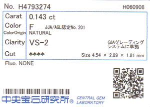 | 製品名 | 天然ダイヤモンド ルース(裸石) 0.143ct, Fカラー, VS-2, ペアシェイプ 【 中央宝石研究所ソーティング袋付 】 |