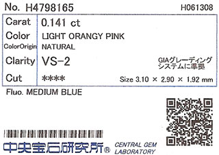 ピンクダイヤモンド ルース 0.141ct 【パステル&フルーツの甘いピンクダイヤです】