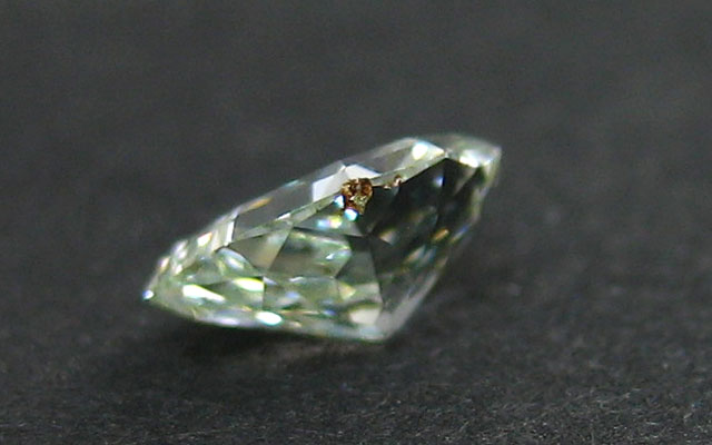 ![]() ▲側面画像 バーンマークをメインに撮影しました(笑)。このグリーンダイヤの色の起源が天然である何よりの証拠です。 |
