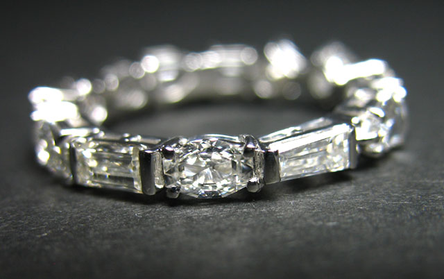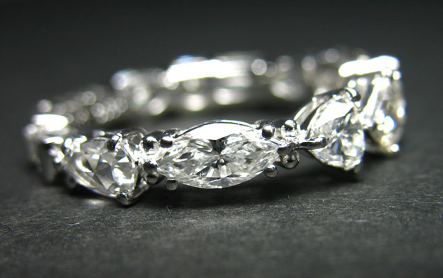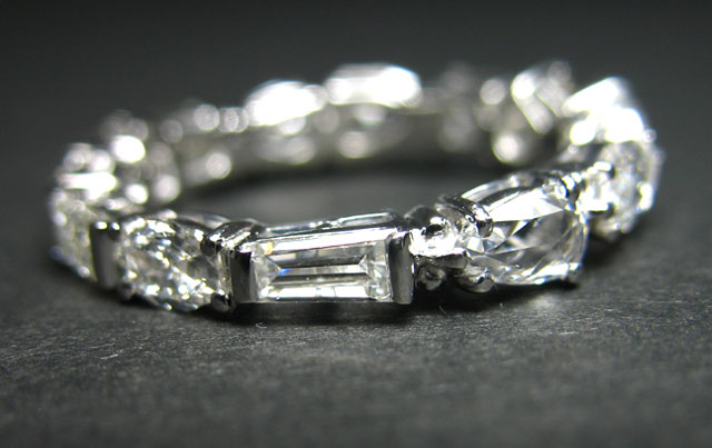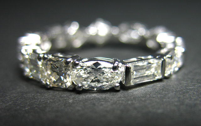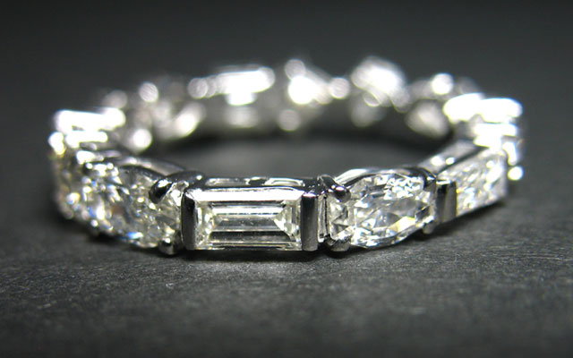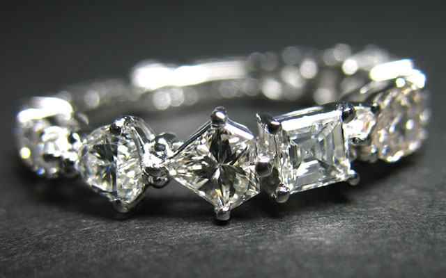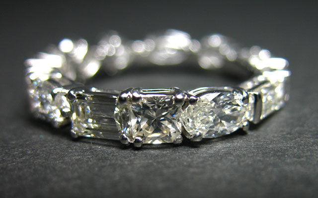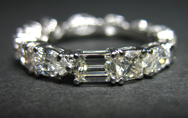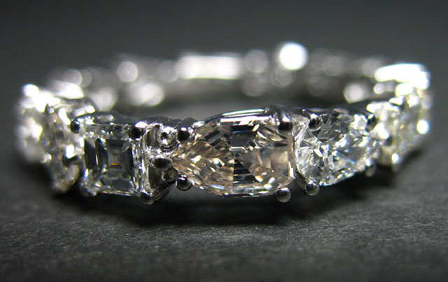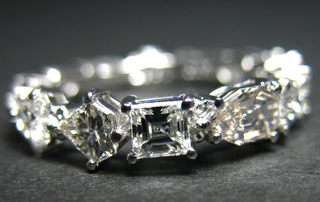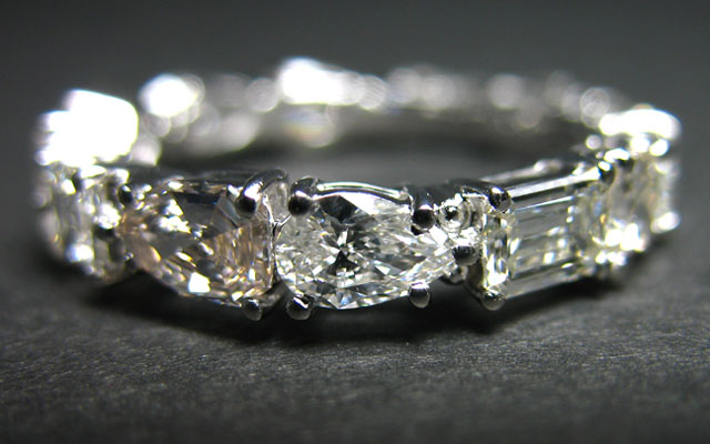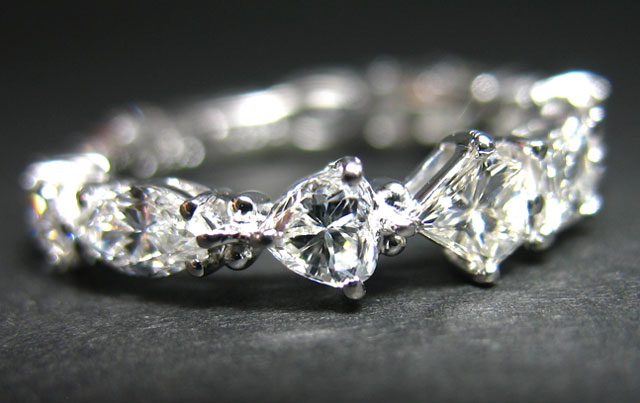 ![]() ![]() ![]() ▲ 全て違う形状のダイヤモンドでフルエタニティリングを作製いたしました。 13ピースのダイヤモンドが織りなす光と輝きの表情をお楽しみ下さい。 |
