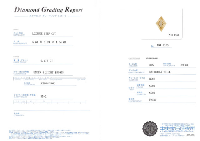 | 鑑定機関 | 中央宝石研究所 |