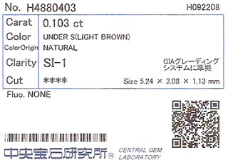ナチュラルのブラウンダイヤモンドです。ナチュラルとは、ダイヤそのものはもちろん、カラーの起源も天然の本物のダイヤモンドのことを言います。