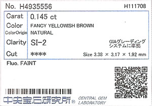 | カラー | Fancy Yellowish Brown ( ファンシー・イエローイッシュ・ブラウン ) |