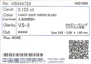 | カラー | Fancy Deep Green Blue ( ファンシー・ディープ・グリーン・ブルー ) |