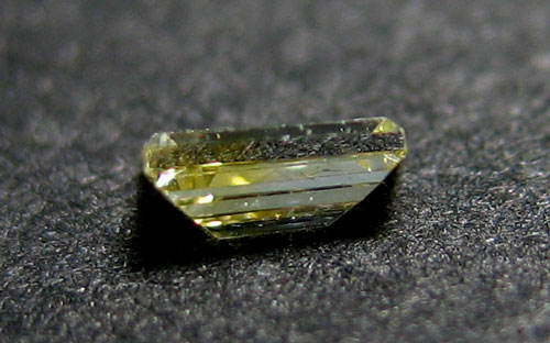 ![]() ▲白い背景で撮影しました。色がはっきりと分かれているバイカラーダイヤです。一つのダイヤモンドの中に、2つの異なる色がはっきりと分離して混在している、非常に珍しいダイヤモンドです。 ![]() ▲黒い背景で撮影しました。やはり、2箇所にはっきりと色の違いが判る『バイカラーダイヤモンド』です。 ![]() ▲ブラックライトを当てて、蛍光性を見た画像です。蛍光性も『バイカラーダイヤ』という非常に興味深いダイヤです。 |