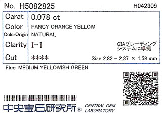 | カラー | Fancy Orange Yellow ( ファンシー・オレンジ・イエロー ) |