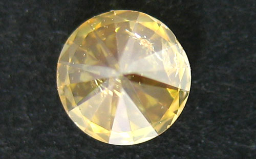 | おそらくガーネットの結晶入りのレアなオレンジ・イエローダイヤです。 |