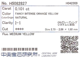 | カラー | Fancy Intense Orange Yellow ( ファンシー・インテンス・オレンジ・イエロー ) |