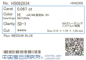 | 製品名 | Hカラー天然ダイヤモンド ルース(裸石) 0.067ct, SI-1, エメラルドカット 【 中央宝石研究所ソーティング袋 】 |