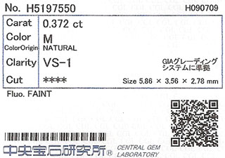 | 製品名 | ダイヤモンド ルース 0.372ct 【 Mカラー マーキース・カット 】 |