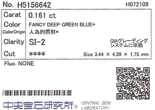 | カラー | Fancy Deep Green Blue ( ファンシー・ディープ・グリーン・ブルー ) |