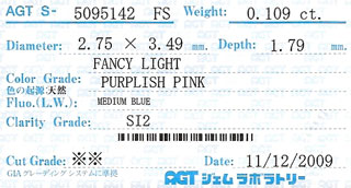 | カラー | Fancy Light Purplish Pink ( ファンシー・ライト・パープリッシュ・ピンク ) |