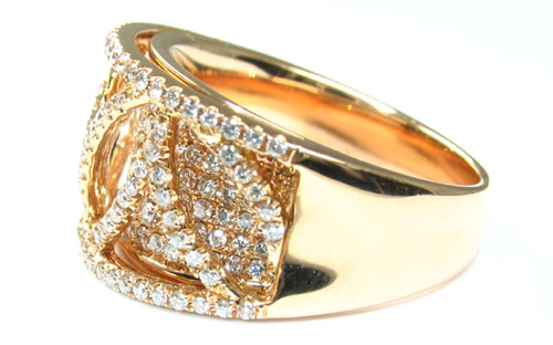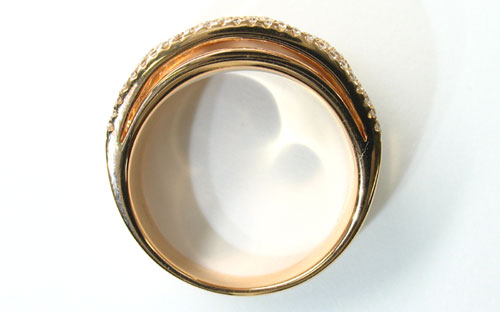 ●側面画像2 下側のパヴェ部分と、上側のレース模様のような部分の2階建て構造をお判り頂けると思います。上と下で完全に空間が開いていることで、上品なそして高級な仕上がりとなっています。
