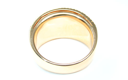 ●逆に、途中から上下2段に分かれ、下段はパヴェデザイン、上段はレースのようなデザインですので、とても上品な美しいリングです。