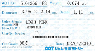 ピンクダイヤモンド ルース 0.074ct 【 ハーフ・ハート・シェイプです 】