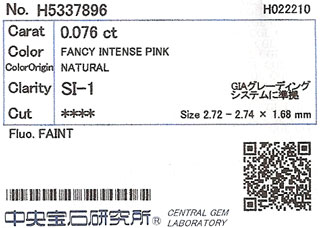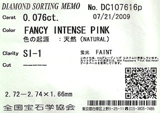 ピンクダイヤモンド ルース 0.076ct 【 しっかりとストレートなファンシー・インテンス・ピンクです 】
