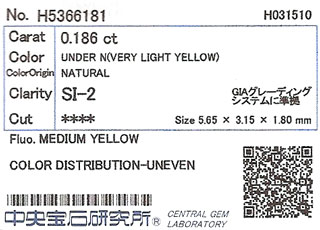 | 鑑定機関 | 中央宝石研究所 |