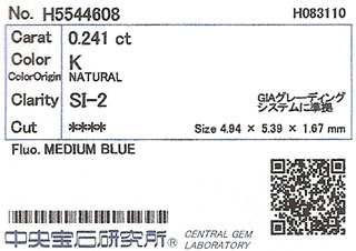 | 鑑定機関 | 中央宝石研究所 |