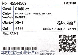 | カラー | Fancy Light Purplish Pink ( ファンシー・ライト・パープリッシュ・ピンク ) |