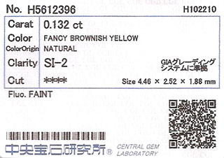 | カラー | Fancy Brownish Yellow ( ファンシー・ブラうニッシュ・イエロー ) |