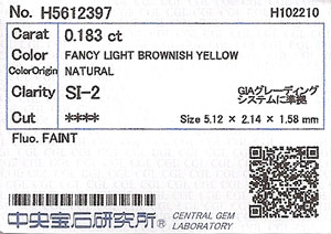 | カラー | Fancy Light Brownish Yellow ( ファンシー・ライト・ブラウニッシュ・イエロー ) |