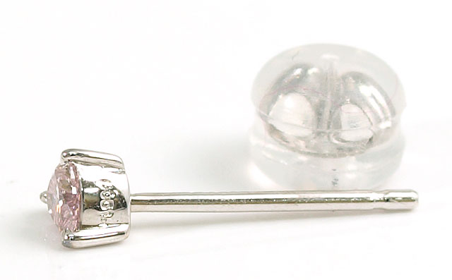 天然ピンクダイヤモンド 0.066ct 片耳用ピアス Light Pink, SI-2, Pt900(プラチナ900) 【 小さな小さなハートシェイプ 】