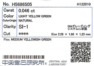 | 蛍光性 | Medium Yellowish Green (ミディアム・イエローイッシュ・グリーン) |