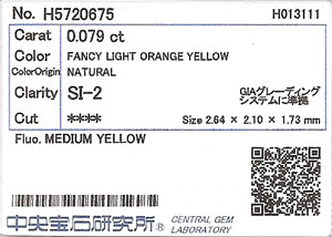 | カラー | Fancy Light Orange Yellow (ファンシー・ライト・オレンジ・イエロー) |