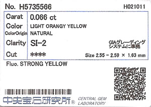 イエローダイヤモンド ルース 0.066ct 【 蛍光性がストロング/イエロー 】