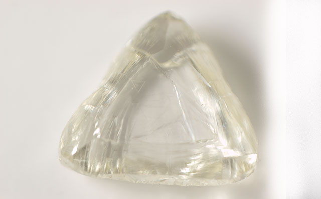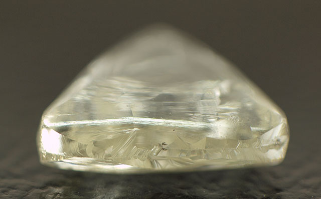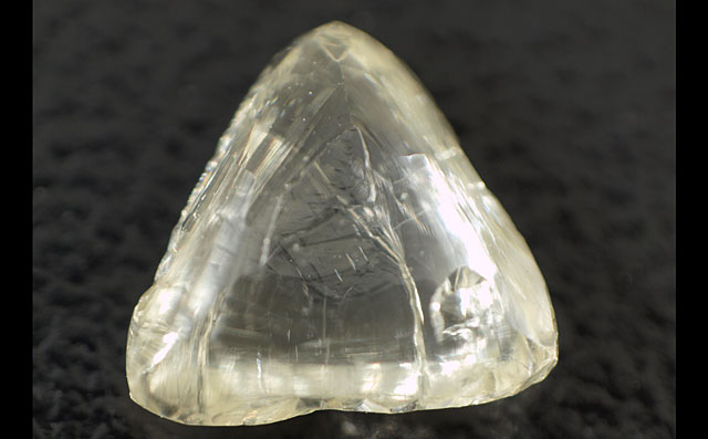 ▲正面画像 ほぼ正三角形の綺麗なマクル・・・ダイヤモンド原石。表面には小さなトライゴンがいくつか確認できます。