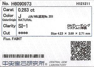 六角形(ヘキサゴナル・モディファイド・ブリリアント・カット)ダイヤモンド, 中央宝石研究所 |