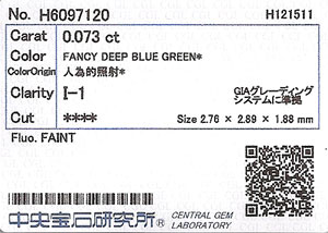 | カラー | Fancy Deep Blue Green (ファンシー・ディープ・ブルー・グリーン) |