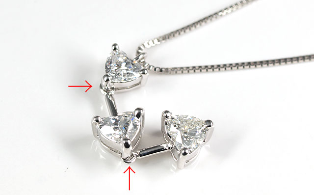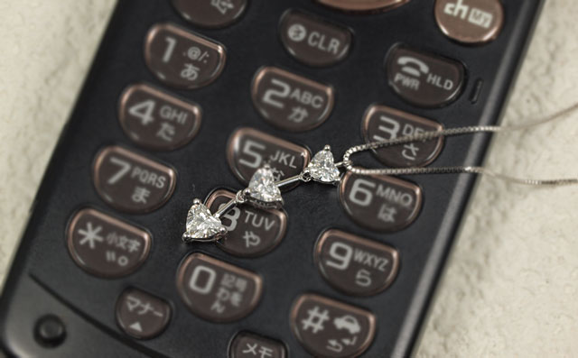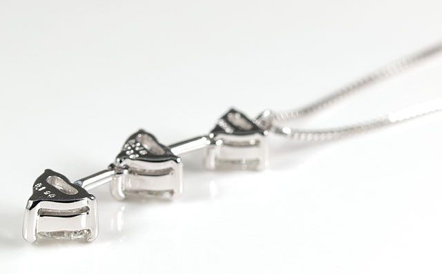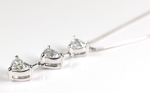 3ストーン・ハートシェイプダイヤモンド・ペンダントネックレス |