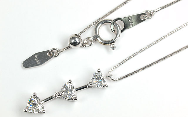 天然ダイヤモンド ペンダントネックレス ハートシェイプ 3ストーンデザイン Pt900&Pt850 【鑑定書つき】