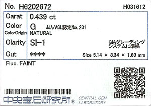 | 鑑定機関 | 中央宝石研究所 |