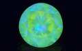 ![]() ▲蛍光性画像 黒い紙などの上に置いて、ブラックライトにあて、部屋を暗くするとこのような鮮やかな蛍光性を示します。 改めてダイヤモンドの魔力の虜(とりこ)になってしまいます。 |