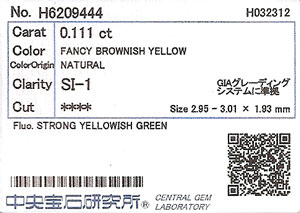 | カラー | Fancy Brownish Yellow (ファンシー・ブラウニッシュ・イエロー) |