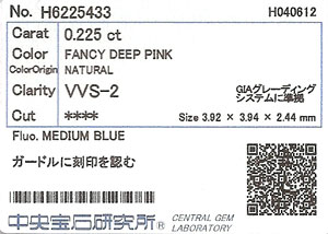 | カラー | Fancy Deep Pink ( ファンシー・ディープ・ピンク ) |